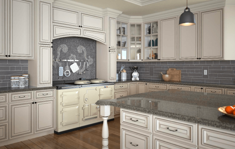 For an old world, sophisticated kitchen, the Signature Pearl cabinet line is the perfect choice for its antique design and intricate detail.